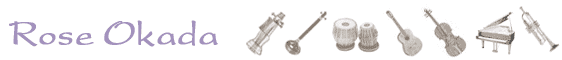Rose began her study of Indian classical music in 1990 by taking a few introductory lessons with violin virtuoso, DR L. Subramaniam. She also studied Hindustani vocal with Nirmal Bajekal, a student of Prahba Atre. Rose traveled eight times to India for Hindustani music study from 1992 until 2001 and is planning a study trip in 2006. She studied Hindustani violin in Mumbai with D.K. Datar and began studying tabla in 1991. During 1994 and 95 she became a student of the great Ustad Zakir Hussain with tabla classes in Seattle. She also studied tabla with Pandit Samir Chatterjee and Hom Nath Upadhyaya of Nepal. In 1994 Rose began her study of the Kirana style vocal and sarangi, soon becoming disciples of both the vocal genius, Pandit Pran Nath and sarangi maestro, Ustad Hafizullah Khan. Khansahib was the son of the great vocalist, Ustad Abdul Wahid Khan and Khalifa (hereditary head) of the Kirana Gharana. Ms. Okada accompanied Pandit Pran Nath on the sarangi in raga classes and performances in Portland, San Francisco, New York, Delhi, Bremen and in Paris. Rose has accompanied many other vocalists on the sarangi including Shrimati Karunamayee, Pandit Jagdish Mohan, Ustad Mashkoor Ali Khan, Terry Riley, Khalifa Samiullah Khan, Khansahib La Monte Young and Marian Zazeela. She has also performed sarangi accompaniment for Bharata Natyam Dance and Kathak dance, and tabla solo sarangi lahara accompaniment for Pandit Samir Chatterjee and Bashir Khan of Pakistan. She also played with Hom Nath Upadhyaya and Arvind Moghe, both of whom studied with the great Ustad Thirakwa Khan.